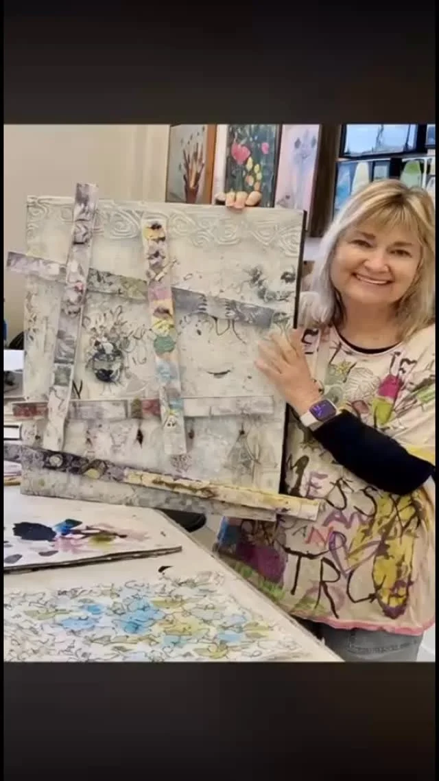 My online gallery is home to a variety of paintings and mixed media works of art. Ranging from contemporary abstract pieces, to garden-inspired canvases and boards, to hand-painted stick bouquets, you’re sure to find that special something to light up your life and your home. “It makes me happy,” is what I most often hear from my clients and studio visitors as they react to my art. And that makes me happy because I believe art should lift us up and and make us see the possibilities all around us. I work with a variety of media, including acrylic paints, pencils, pens, pastels, and oil sticks. I also use the unusual - things like dry wall tape, plaster of Paris, wallpaper and hand-decorated papers. Please enjoy your stroll through this gallery. If you have any questions, don’t hesitate to contact me. Better yet, if you can, please come visit me at my studio in San Diego’s Liberty Station.
